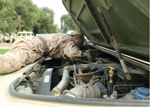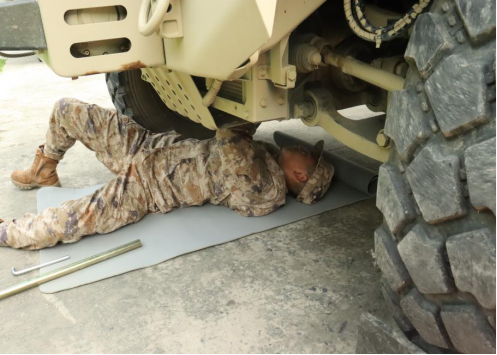 保养现场,官兵们干劲十足、细致入微。有的蹲在车旁用专用工具检测电瓶储电量,有的钻入车底检查传动轴连接情况,有的手持压力表校准轮胎胎压,对发现的滤清器堵塞、管路轻微渗漏等问题,第一时间就地拆解维修。我部技术骨干说:“每一颗螺丝的松紧、每一滴油液的质量,都直接关系到车辆行驶安全,容不得半点马虎。”